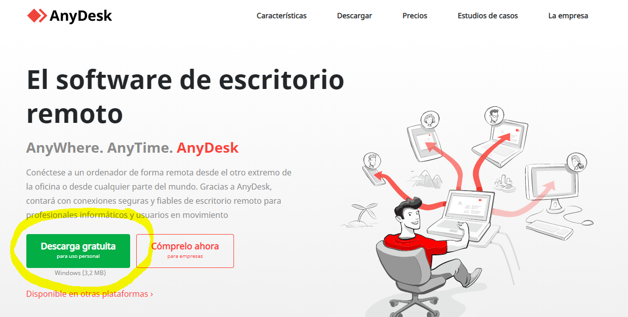 Programa para poder conectarnos remotamente a su ordenador desde el otro extremo desde cualquier parte del mundo. Gracias a AnyDesk, contaremos con conexiones seguras y fiables de escritorio remoto para profesionales informáticos y usuarios en movimiento.